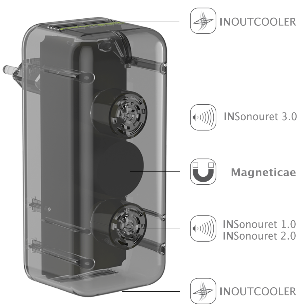 El R200 combina todas nuestras últimas y más eficaces tecnologías: contra mosquitos (INSonuerit1.0), moscas (INSonuerit2.0), ratones y cucarachas (INSonuerit3.0) y hormigas (MAGNETICAE). Además la incorporación de la tecnología INOUTCOOLER le proporciona la refrigeración que requiere su gran potencia, y nos ha permitido alcanzar coberturas de hasta 40m2 (mosquitos, moscas), de 150 m2 (ratones, cucarachas) y de hasta 250m2 para hormigas.